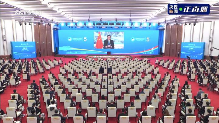 2022年11⽉4⽇晚,第五届中国国际进⼝博览会暨虹桥国际经济论坛开幕式在上海举⾏,中共中央总书记、国家主席、中央军委主席习近平以视频⽅式出席开幕式并发表题为《共创开放繁荣的美好未来》的致辞。