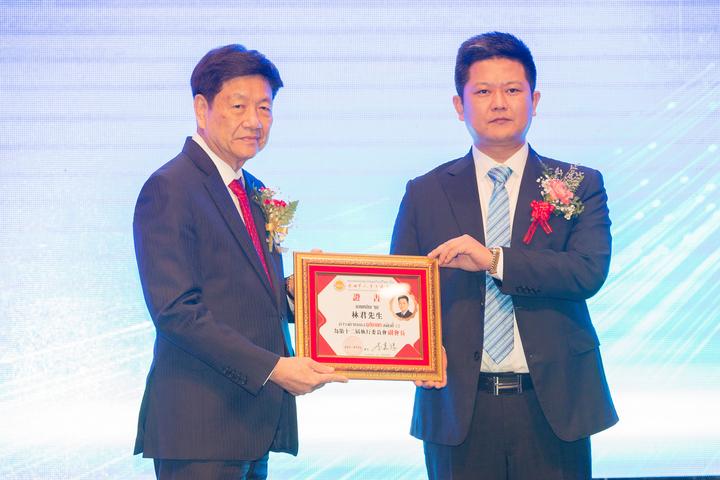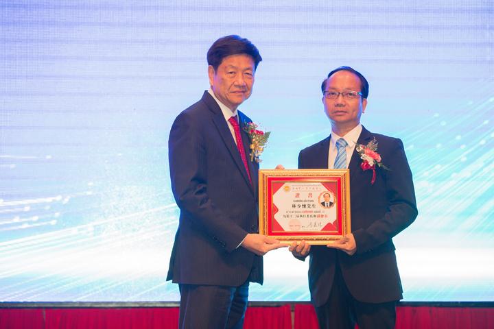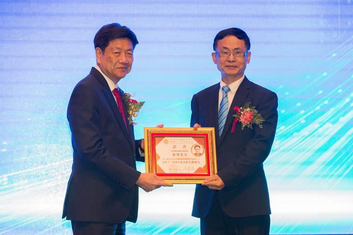 泰国中华总商会林楚钦主席向林深名誉会长颁发荣誉证书