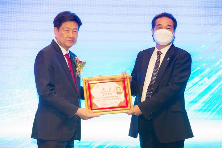 泰国中华总商会林楚钦主席向宁禾名誉会长颁发荣誉证书