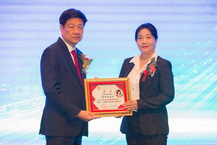 泰国中华总商会林楚钦主席向李宛情常务副会长颁发任职证书