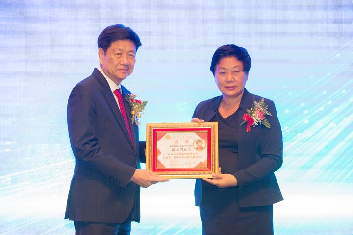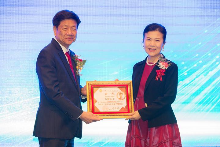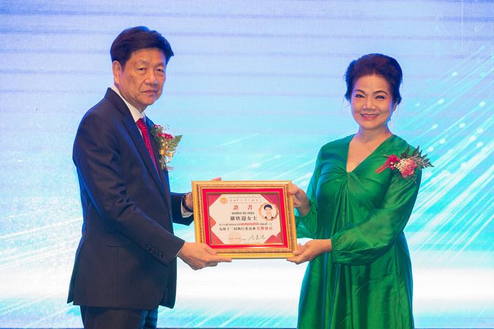 泰国中华总商会林楚钦主席向杨艳峰名誉会长颁发荣誉证书