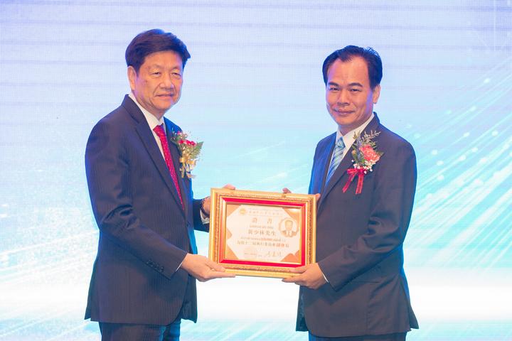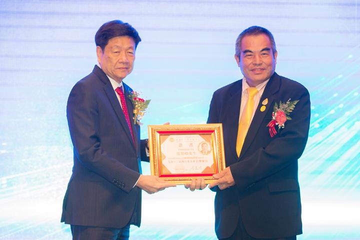 泰国中华总商会林楚钦主席向大会主席李桂雄名誉会长颁发荣誉证书