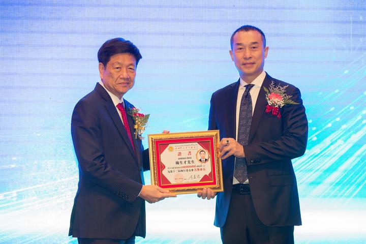 泰国中华总商会林楚钦主席向杨生才名誉会长颁发荣誉证书