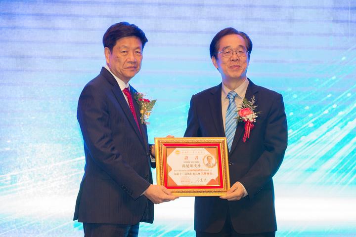 泰国中华总商会林楚钦主席向尚延明名誉会长颁发荣誉证书