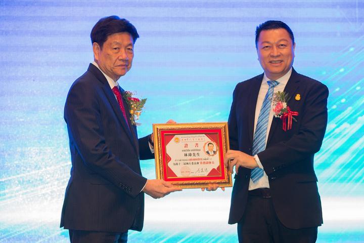 泰国中华总商会林楚钦主席向肖文彬副会长颁发任职证书