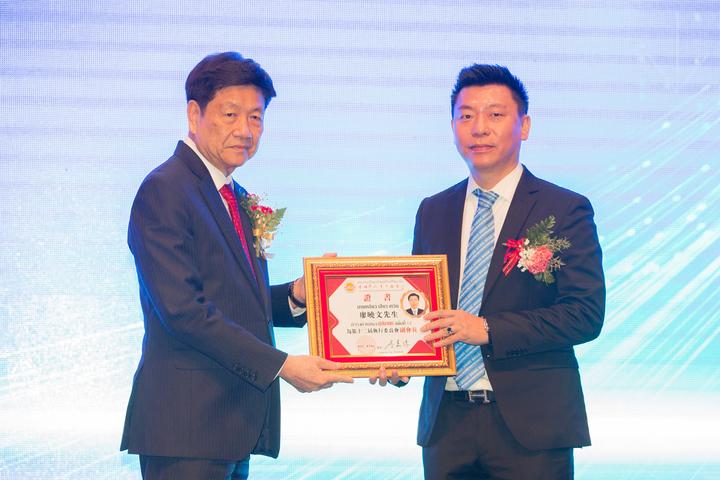 泰国中华总商会林楚钦主席向时磊名誉会长颁发荣誉证书
