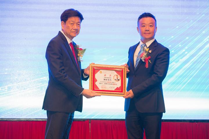 泰国中华总商会林楚钦主席向陈平常务副会长颁发任职证书