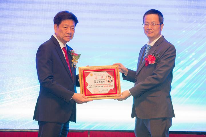 泰国中华总商会林楚钦主席向刘龙常务副会长颁发任职证书