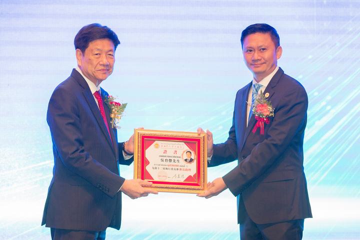泰国中华总商会林楚钦主席向吴育杰会长助理颁发任职证书