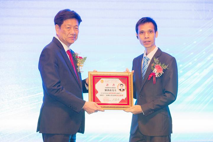 泰国中华总商会林楚钦主席向邱俊杰副会长颁发任职证书