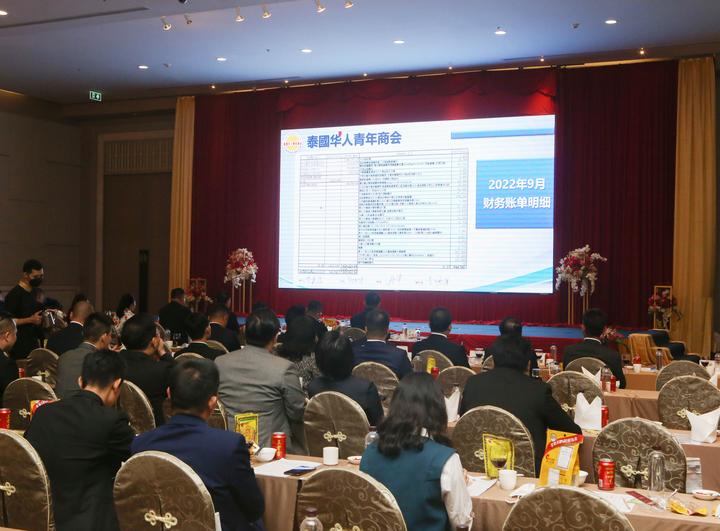 泰国华人青年商会第十二届执行委员会第一次会议于2022年11月22日晚,在曼谷中华总商会光华堂隆重召开。会上,李嘉淳会长首先致辞,并举行新一届十三部门亮相环节,会议通过了财务报告、会务报告,常务副会长:林玮、刘龙、姚鸿春、陈平、林扬刚、陈汉国、史大佗、李宛情等近150位常执委出席会议,会议由主任委员林婷婷主持。