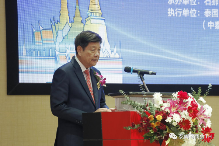 泰中文华经济协会主席、泰国前国会主席颇钦蓬拉军博士致辞中表示:非常荣幸出席本次推介会,他说,这次泉州经贸代表团是疫情后至今来泰国访问的最高级别的代表团,我本人到访过福建省石狮市多次,通过刚才中国来的各位领导的介绍,了解到更多关于“一带一路”的情况、我本人也比较喜欢历史、学习了自从郑和下西洋之后,通过海上的文化交流,中泰贸易往来增加,现在中国以和平发展的宗旨,未来在海上丝绸之路会起到巨大作用,我们泰中文化经济协会长期致力于促进两国双边各项合作。颇钦博士还讲述了数次出访中国的各项点点滴滴的趣事。赢得阵阵掌声。