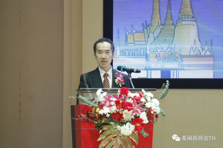 中国驻泰国大使馆经济商务处王立平公参在致辞中表示:中国农历新年刚过完,就迎来了泉州市政府代表团,这是疫情后至今国内来泰国访问的最大的最重要的一个代表团。在此热烈的欢迎汪副市长一行,中泰两国关系长期友好发展,在疫情下,两国的贸易额稳健的发展,中国来泰国的投资仍然保持泰国第二大贸易国,泰国成为越来越多的中国企业家海外投资的首选地。中泰合作还有一个巨大的优势,就是泰国华侨华人众多,比如像蔡孝兴会长这样的优秀企业家。虽然我本人还没有去过泉州,但是我对这座城市非常向往,这是非常著名的侨乡,是福建省第二大城市,民营企业非常强大,在建材、石材、机械制造等方面非常有实力。希望在座的泰国企业家珍惜这次机会,对接交流,为泉州和泰国的各项合作做出成绩,做出贡献。