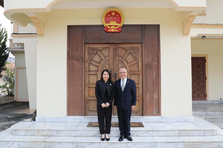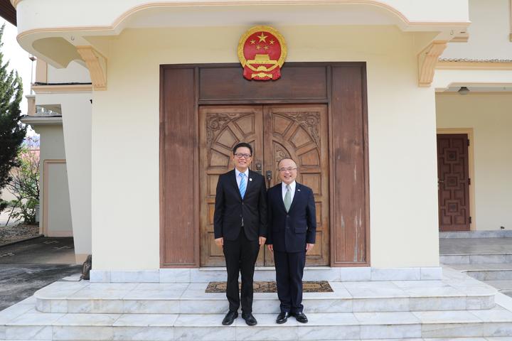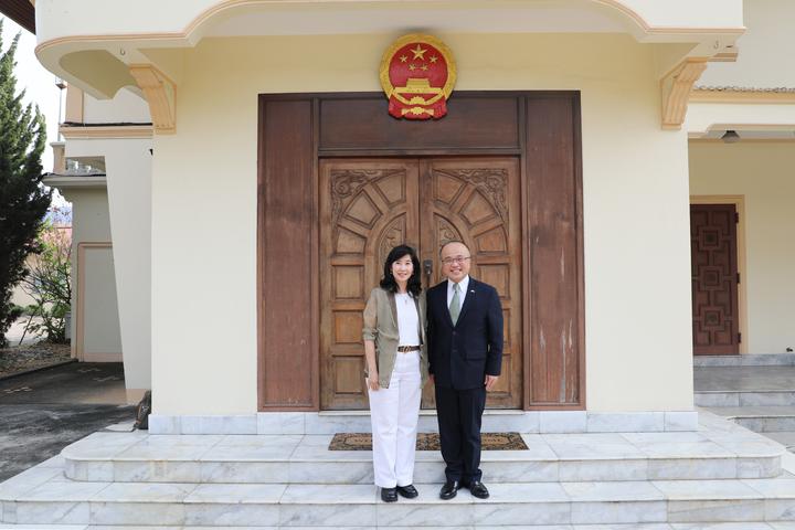 3月15日11时,抵达清迈后的第一站,李嘉淳会长率团前往中国驻清迈总领事馆拜访,受到吴志武总领事的热情接待与会见,双方进行亲切问候并举行座谈交流。