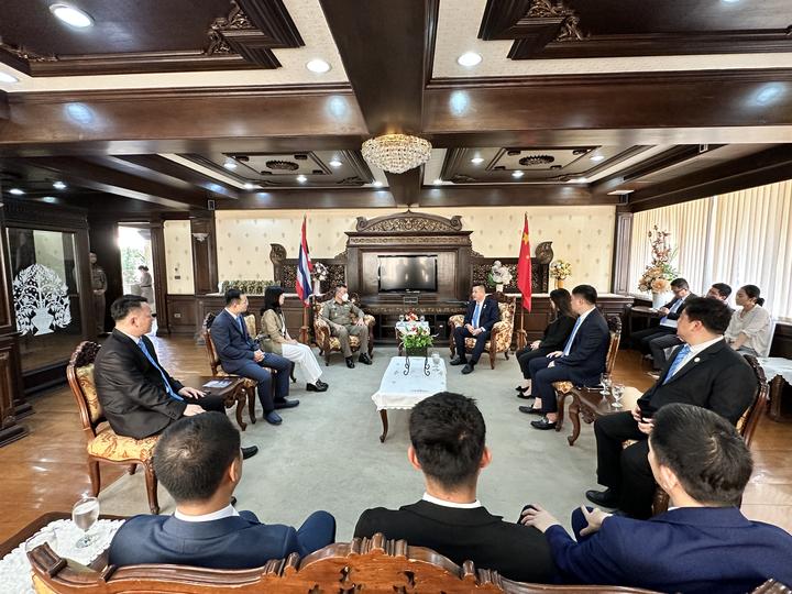 抵达清迈后的第二站,李嘉淳会长率团前往泰国第五军区拜访,受到青商会荣誉顾问、泰国第五军区总指挥比亚·达威猜警中将的热情接待与会见,双方进行亲切问候并举行座谈交流。