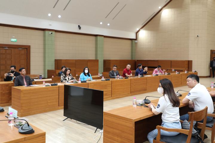 清迈府管委会副主席那温·信突沙昂先生(นายนาวิน สินธุสอาด)首先代表清迈府管委会向李嘉淳会长率团一行来访表示欢迎和感谢,并通过现场视频的播放介绍了清迈府当地特色农产品及加工产品的发展历史和目前情况。他表示,清迈府是一个充满特色农产品的地区,这些产品包括水果、咖啡、茶叶、香料等等。这些农产品在当地享有很高的声誉和市场需求,因为它们有着独特的品质和口感。这些特色农产品在泰国国内市场已经有了很大的发展,但是在国际市场上仍有很大的发展潜力。这就为在泰华人华侨和清迈本地的农产品贸易之间提供了很大的机会和空间。