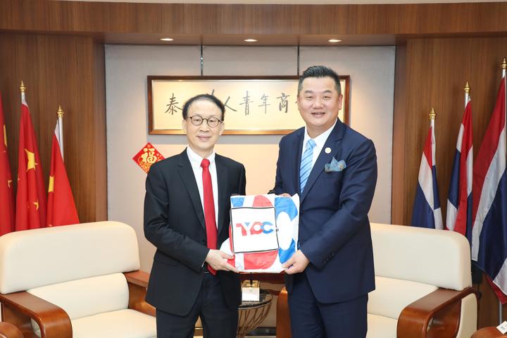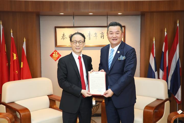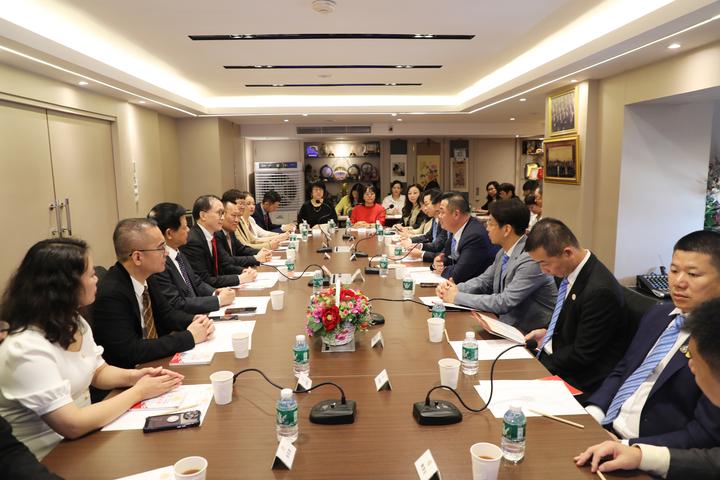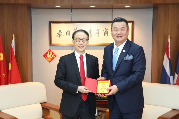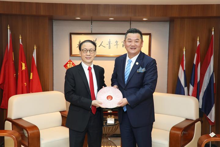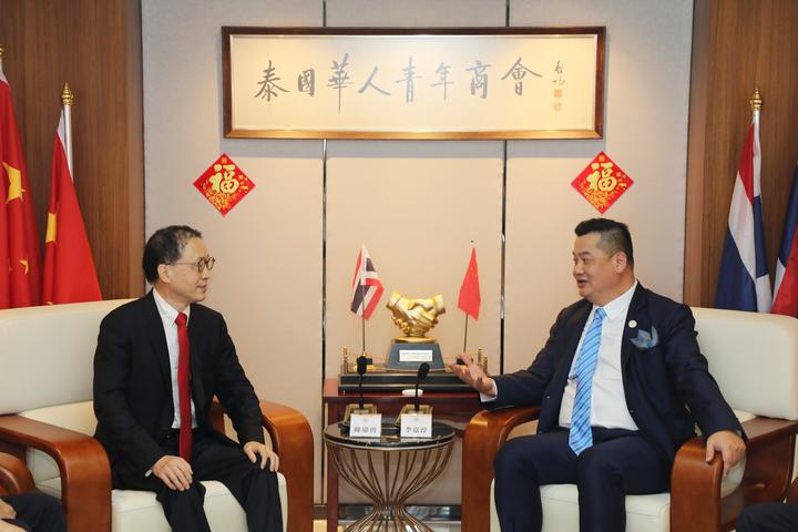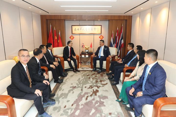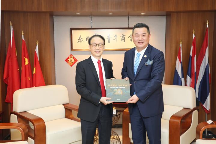2023年3月26日,泰国华人青年商会会长李嘉淳于商会会议厅欢迎接待汕头市进出口商会陈雄勇会长一行来访,双方进行亲切问候并举行交流座谈。