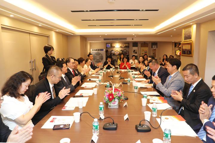 观看泰国华人青年商会纪念片《不忘初心 砥砺前行》、汕头市进出口商会成立20周年纪念片《我们来自三江》