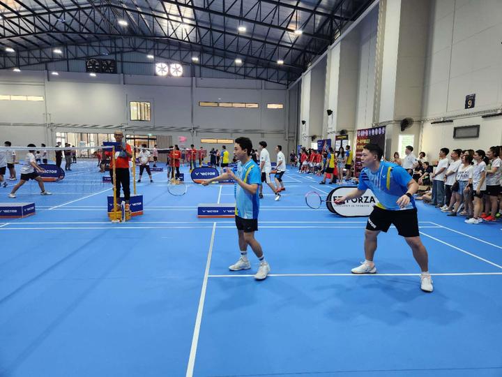随后,邀请第一届中泰友好羽毛球联谊赛筹备主任傅增有教授讲话,VICTOR(泰国)公司总经理助理张昊讲解比赛规则及注意事项,参赛队伍赛前合影留念。