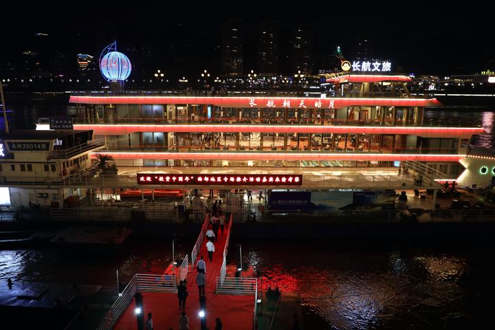 在结束了一天的拜访行程和商务考察活动后,17日晚,青商会访问团一行受重庆市商务委邀请与参加西洽会投资中国年西部地区专场推介会的各位嘉宾一同登上朝天皓月号,一起游览重庆两江,尽享山城夜景。