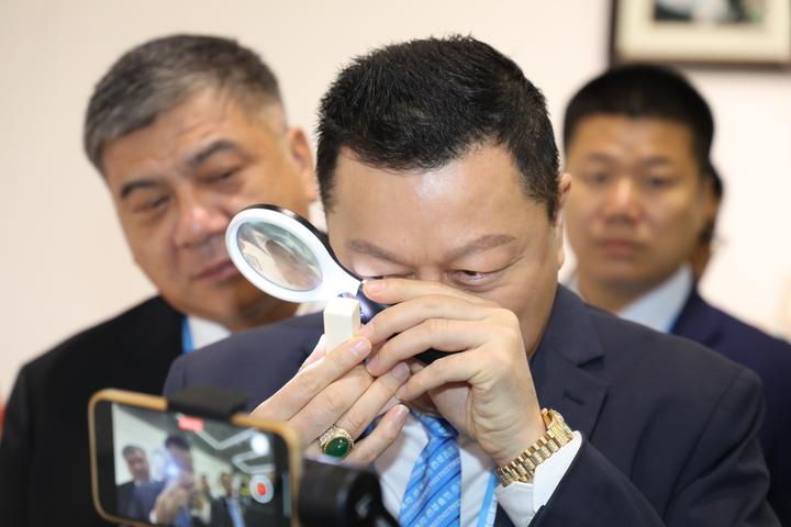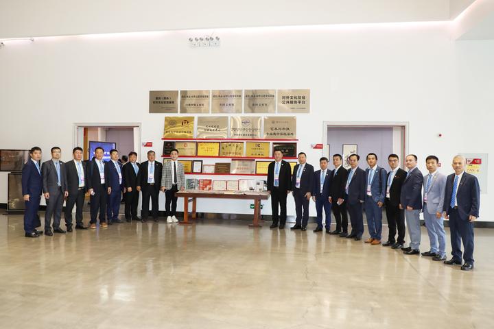 在座谈开始前,张航董事长陪同访问团一行参观了非遗推广中心、中国好礼重庆发展中心及艺术品保税展厅。非遗推广中心作为重庆(西永)对外文化贸易基地常设的永久性展馆,积极体现自身责任意识和担当精神,坚守发扬中国文化,增强文化自信自强。力争在文化艺术领域以最大的使命感和责任感不断探索,深化文明交流,通过不断与不同国家、不同地域碰撞文化艺术火花;中国好礼重庆发展中心首个精品展厅的建立,对丰富“新重庆”内涵,拉动商贸文旅高质量发展,推动市民高品质生活发展,进一步建设国际消费中心城市,打造人文之城具有重要意义。
