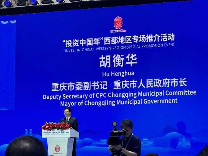 胡衡华说,重庆是西部大开发的重要战略支点,处在“一带一路”和长江经济带的联结点上,在国家区域发展和对外开放格局中具有独特而重要的作用。当前,我们正深入贯彻党的二十大精神和习近平总书记重要指示要求,扎实推动高质量发展、创造高品质生活、推进高效能治理,在新时代新征程全面建设社会主义现代化新重庆。新时代新征程新重庆,正致力于打造高质量发展的新增长极,展现出广阔的投资前景。我们全力推进成渝地区双城经济圈、西部陆海新通道、新时代西部大开发等国家战略落地落实,启动实施数字重庆建设,加快建设国家重要先进制造业中心、西部金融中心和国际消费中心城市,国内外企业扩大在渝投资恰逢其时。新时代新征程新重庆,正致力于服务构建新发展格局,蕴含着巨大的投资空间。我们发挥国内国际双循环重要节点优势,全力推进国际性综合交通枢纽城市建设,不断提升开放平台能级,这为国内外企业在渝发展提供了更加丰富的投资场景。新时代新征程新重庆,正致力于建设高质量外资集聚地,着力营造国际一流投资环境。我们统筹推进国家营商环境创新试点城市建设和服务业扩大开放综合试点,落实外商投资准入负面清单,强化外资项目全生命周期服务,持续营造市场化、法治化、国际化营商环境。今天的重庆,正日益成为投资热土、兴业沃土、创业乐土。诚挚欢迎各位企业家多到重庆走一走、看一看,发现投资机遇,找到合作伙伴,实现互利共赢。