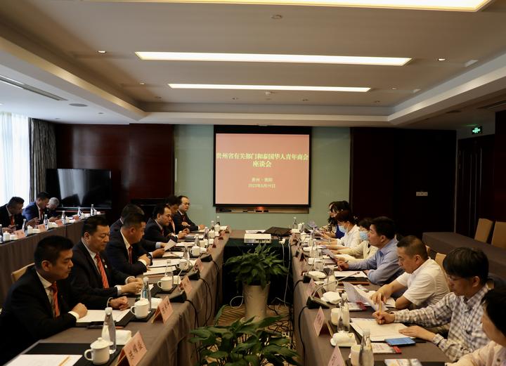 座谈会上,省委统战部侨务工作处处长成德义介绍了贵州与泰国开展侨务工作的计划和设想,省投资促进局代办服务中心主任杨熠作投资贵州推介,省商务厅外资处二级调研员欧阳于蓝作外商投资推介,观看了泰国华人青年商会资料片。双方就“发挥在泰华侨华人青年促进中泰友好合作、推动贵州与泰国的交流合作、经贸往来”进行座谈。