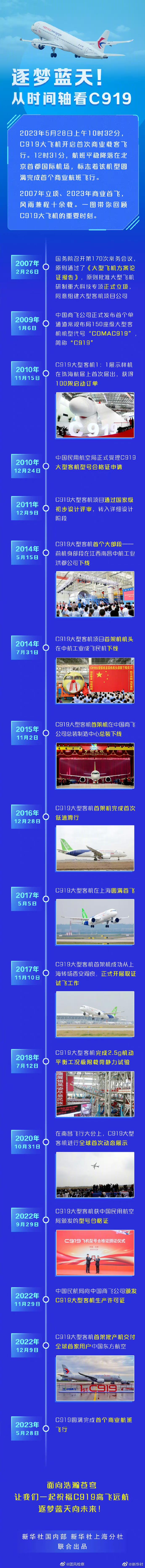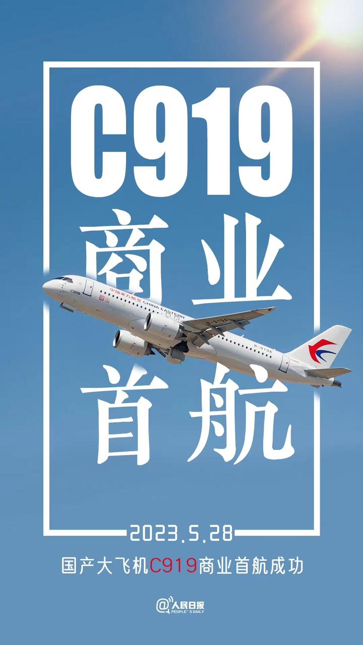 2023年5月28日上午10点32分,中国东方航空使用中国商飞全球首架交付的C919大型客机,执行MU9191航班,从上海虹桥机场飞往北京首都机场,开启这一机型全球首次商业载客飞行。该航班标志着C919的“研发、制造、取证、投运”全面贯通,中国民航商业运营国产大飞机正式“起步”,中国大飞机的“空中体验”正式走进大众视野。
