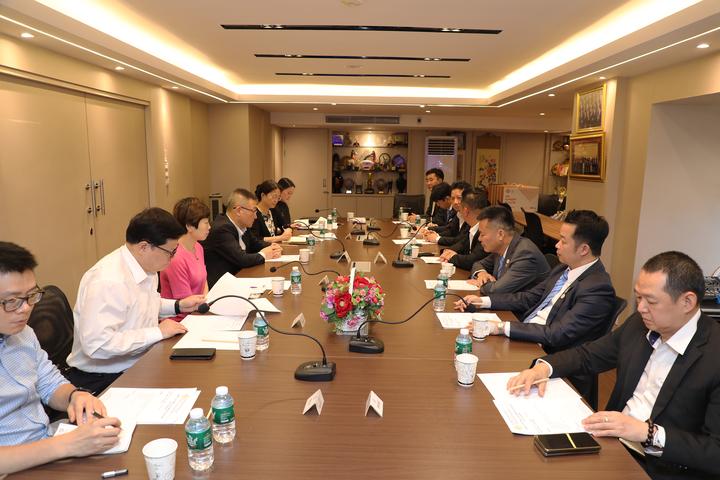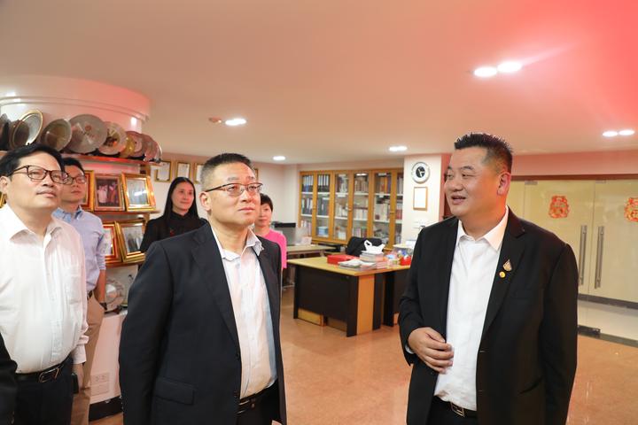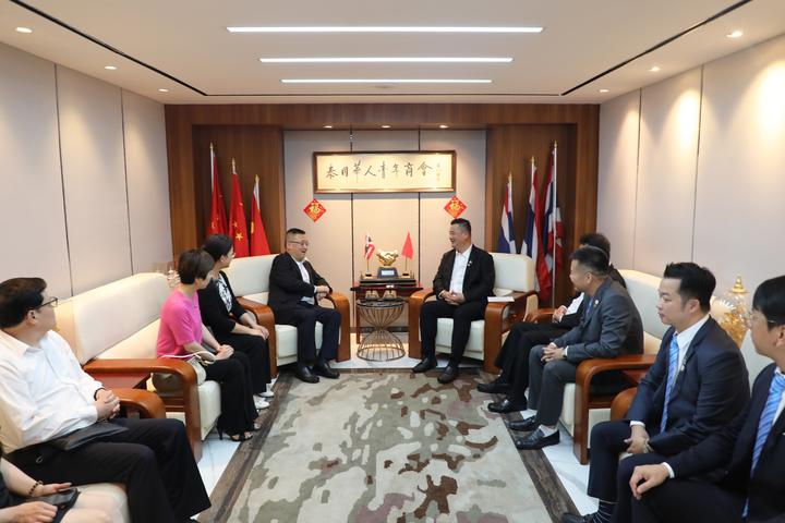 2023年6月25日,泰国华人青年商会会长李嘉淳于商会会议厅欢迎接待上海市国际贸易促进委员会(以下简称上海贸促会)周敏浩会长一行的来访,双方进行亲切问候并举行交流座谈。来访团成员还有:上海贸促会人事部部长黄达明、上海贸促会国际联络部部长李洁、上海贸促会贸易投资促进部部长陈泓、上海国际仲裁中心秘书长王唯骏、上海贸促会国际联络部副主任科员陈首杰。青商会陪同接待的有:名誉会长赵春森、副会长林晓东、周小彬、李先标、吳育雄,常务委员马兴海、总干事李焕泽。