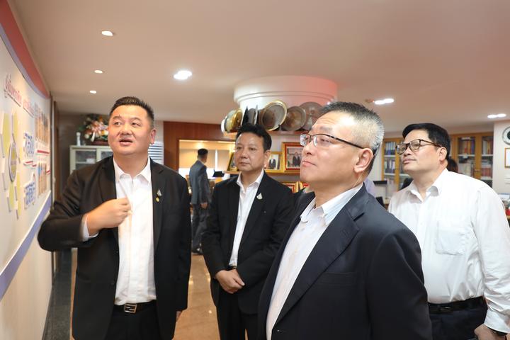 李嘉淳会长首先带领周敏浩会长一行参观青商会历史文化墙,向大家逐一介绍商会成立20年来的重要事迹。并一同观看泰国华人青年商会成立20周年纪录片《不忘初心 砥砺前行》。