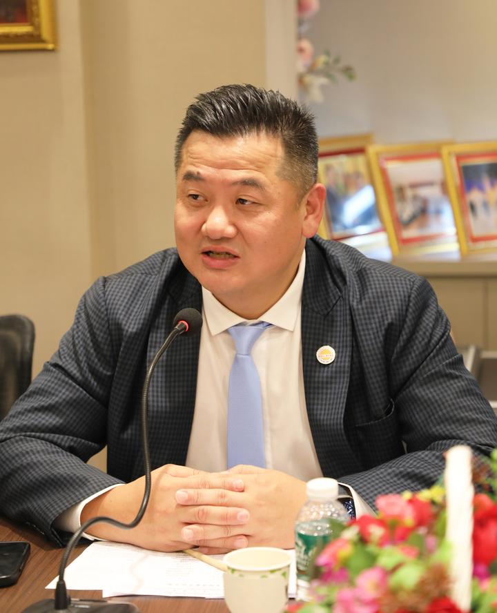 林锡丰会长在座谈中向李嘉淳会长等青商会同仁的热情接待表示感谢,他说到,和李嘉淳会长是在2021年结识,当时是通过广东省彩宝首饰商会泰国分会的赵震东会长介绍来到我们商会,与大家交流并指导工作。今天也十分开心能够有机会带领商会成员来到青商会进行互访,在刚才通过李嘉淳会长的介绍和视频的观看,我看到青商会从2000年到现在的发展历程,十分艰辛,我也感到十分的骄傲,所以今天我也带领我们的商会骨干代表前来,来青商会实地考察学习。