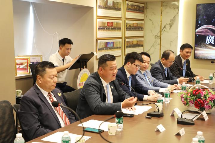 2023年7月17日,青商会李嘉淳会长于商会会议室欢迎接待广东省彩宝首饰商会林锡丰会长一行来访,双方进行亲切问候并举行交流座谈。