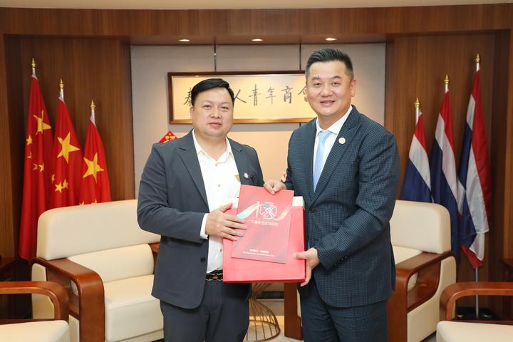李嘉淳会长首先带领访问团一行参观青商会历史文化墙,向大家逐一介绍商会成立20年来的重要事迹。并一同观看泰国华人青年商会成立20周年纪录片《不忘初心 砥砺前行》。