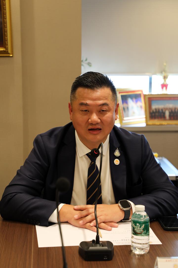 李会长还介绍了泰华侨团的发展情况,泰国华人青年商会成立的艰辛历程,他说到,泰国华人青年商会的成立是应时代所需,在李桂雄永远名誉会长及诸多会内前辈默默耕耘下,青商会才有了现在的成绩和地位。同时,青商会作为海外华人华侨爱国社团组织,一直在以自身力量为来泰新华侨做坚强的后盾,自始至终围绕祖国发展的大方向和大背景开展各项会务活动;建立初衷是为了联系在泰华人青年,传递乡情乡谊,共同谋求发展,弘扬传统中华文化,各地经济发展,拓展经贸合作,以实现贡献社会的目标。