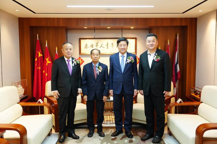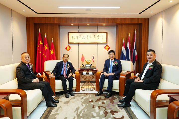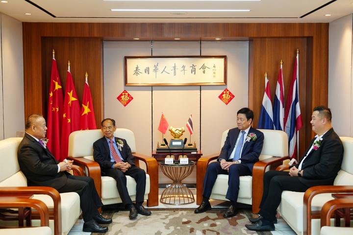 2023年8月22日,正值中华民族传统佳节—七夕节之际,泰国中华总商会主席林楚钦、泰国潮州会馆主席徐惠深、泰国华人青年商会永远名誉会长李桂雄关心关爱在泰华人华侨青年群体,莅临泰国华人青年商会访问指导工作,青商会李嘉淳会长热情接待并举行座谈。