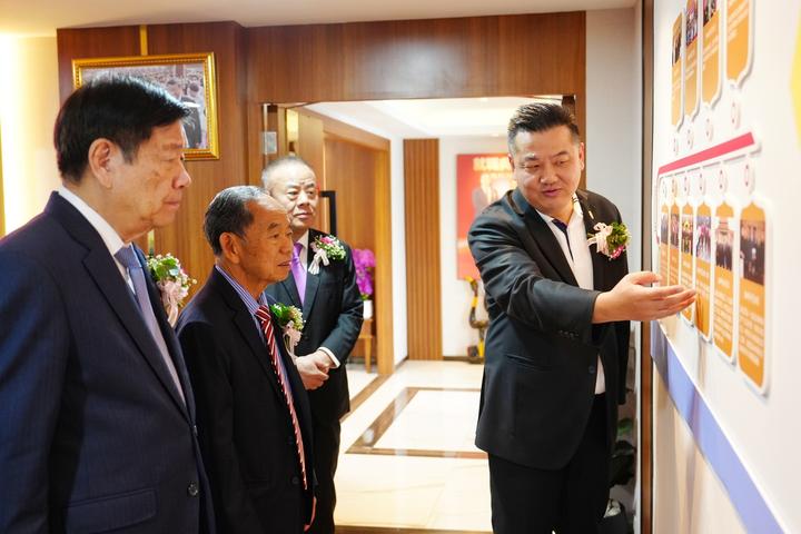 在座谈正式开始前,李嘉淳会长首先带领林楚钦主席、徐惠深主席、李桂雄永远名誉会长参观青商会历史文化墙,并逐一向各位领导介绍青商会成立发展23年来的重大历史事件。