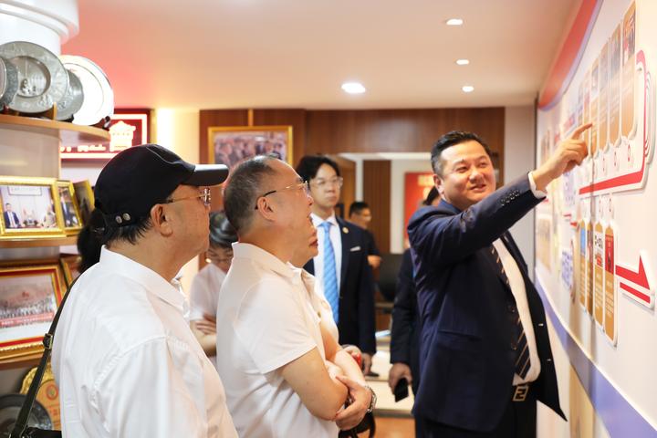 李嘉淳会长首先带领代表团成员一同参观了青商会历史文化墙,并一同观看了泰国华人青年商会成立20周年纪念片《不忘初心 砥砺前行》、《广东省客属海外联谊会宣传片》,通过视频的播放对双方的建会历史和未来发展方向有了一定的了解。