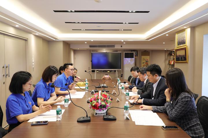 2023年9月15日,青商会姚鸿春常务副会长受李嘉淳会长委托,在商会会议室欢迎接待广西省凭祥市跨境电子商务协会、深圳海外潮人经济促进会代表团的来访,三方进行亲切问候,并举行座谈。来访团成员有:凭祥市跨境电子商务协会执行会长黄大峭、副会长夏燕、谢锡洪;深圳海外潮人经济促进会常务副会长李振荣、副会长唐小燕。
