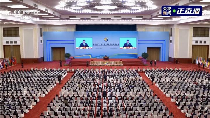 2023年10月18日,第三届一带一路国际合作高峰论坛在北京人民大会堂开幕,中共中央总书记、国家主席、中央军委主席习近平出席开幕式并发表题为《建设开放包容、互联互通、共同发展的世界》的主旨演讲。