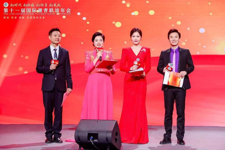 第十一届国际潮青联谊年会执行主席,国际潮青联合会副会长,联合国儿童基金会亚太区慈善推动使者李红梅 ,第十一届国际潮青联谊年会执行主席,国际潮青联合会副会长赵克锋,北京潮商青委会副主席、电影频道主持人谢映玲及中央广播电视总台节目主持人蔡志雄主持年会。