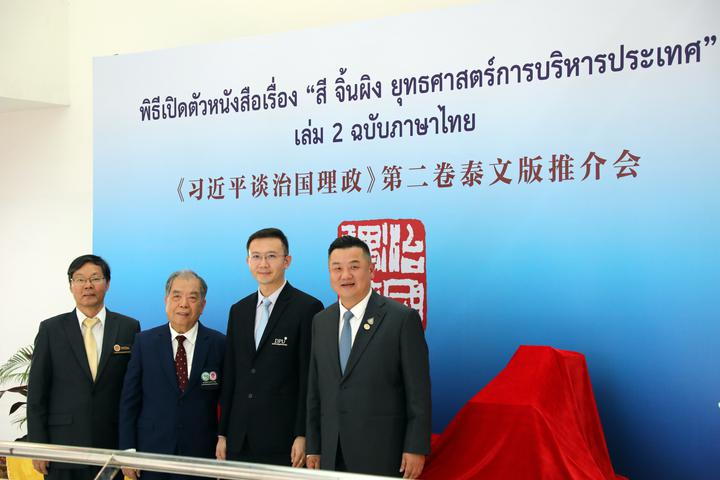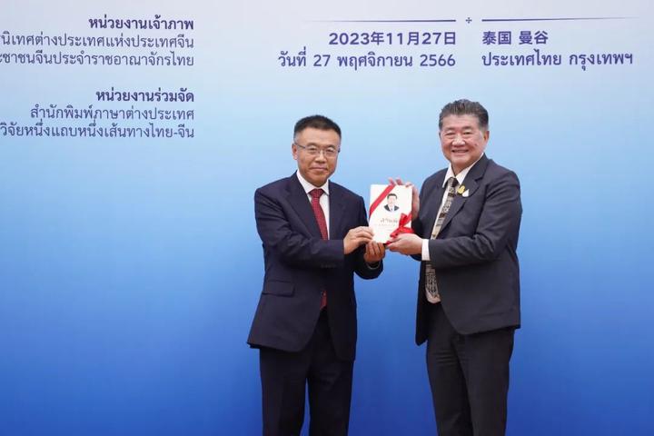 活动中,刘大为、韩志强分别向普坦·威乍耶猜、披尼·扎禄颂巴等泰方嘉宾赠送了《习近平谈治国理政》第二卷泰文版新书。《习近平谈治国理政》第二卷泰文版由外文出版社与泰国泰中“一带一路”合作研究中心合作翻译,于近日正式出版发行。