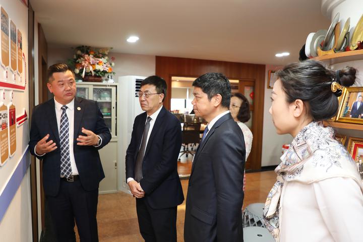 李嘉淳会长首先带领李国强教授一行参观青商会历史文化墙,向来访成员介绍青商会成立23年来的发展历史和重大事迹,并一同观看《泰国华人青年商会成立20周年纪录片》。
