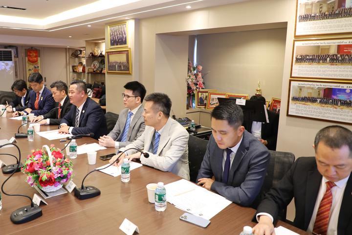 2023年12月10日,青商会李嘉淳会长于商会欢迎接待全国人大华侨委员会李国强委员率领的代表团一行的来访,双方进行亲切问候并举行座谈交流。一同前来访的代表团成员有:全国人大华侨委员会委员陈云英、全国人大华侨委员会法案室二级巡视员徐利、全国人大华侨委员会办公室三级调研员乔雪竹。中国驻泰国大使馆刘敬师侨务参赞陪同来访。青商会参与接待的成员还有:常务副会长姚鸿春;副会长李大成、陈耀盛、林晓东、周小彬、刁刻佳;常务委员马兴海、林政希;总干事李焕泽。