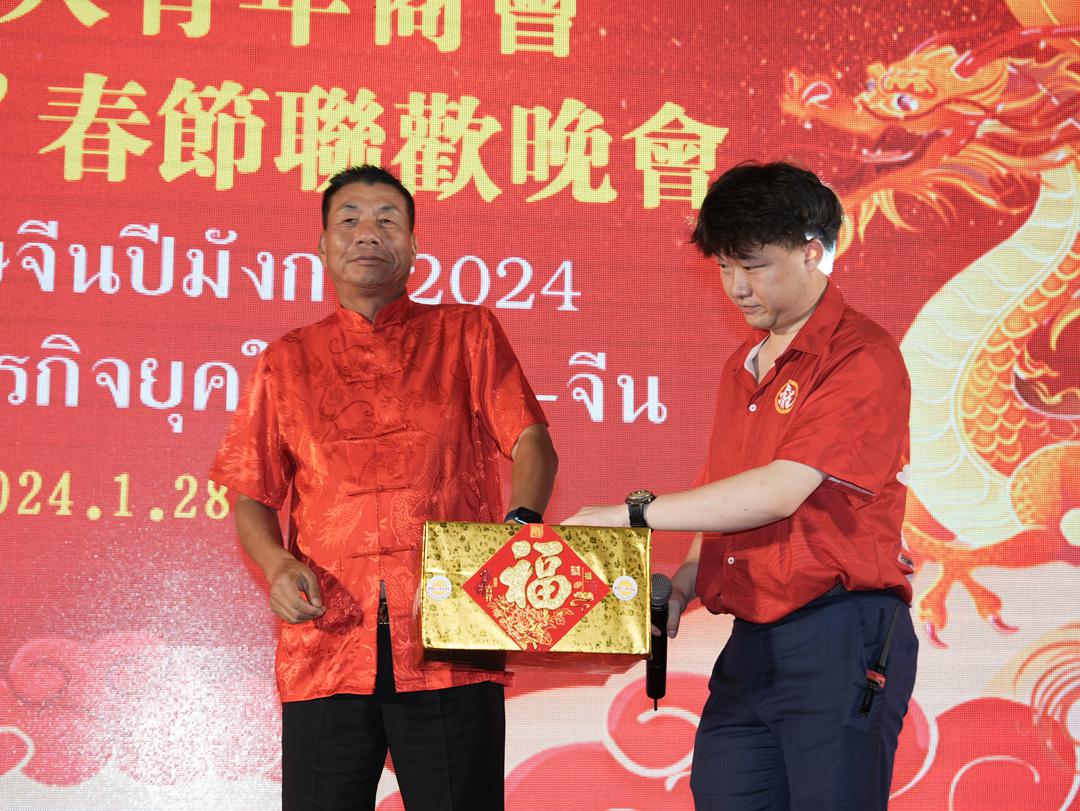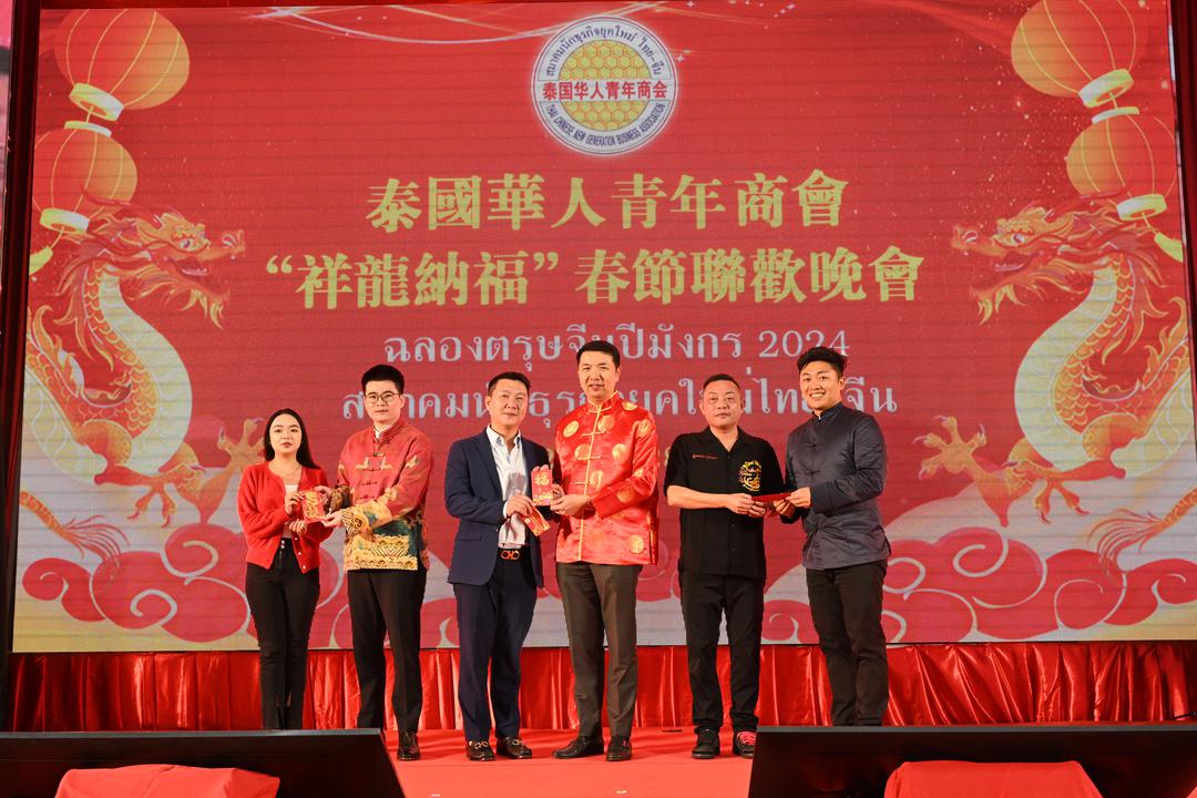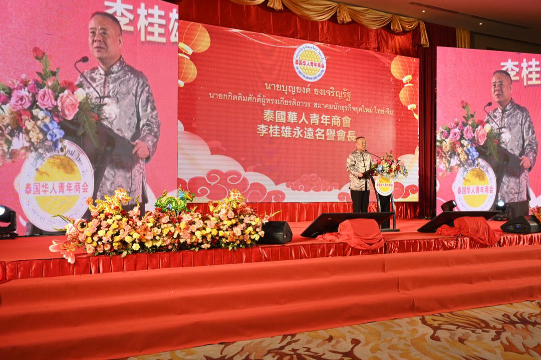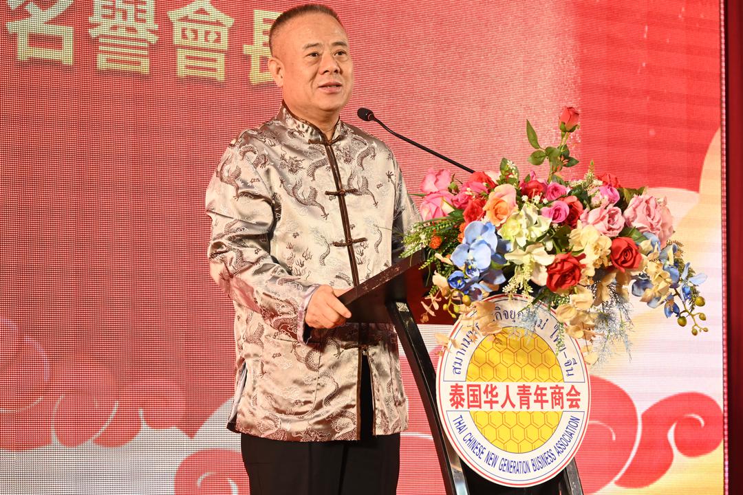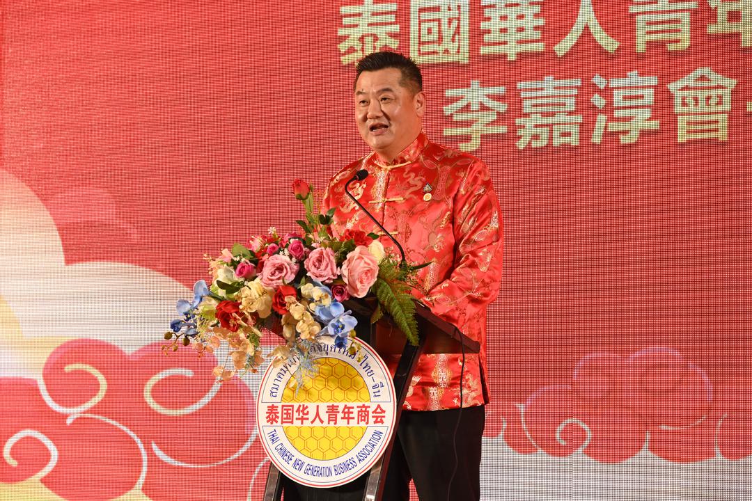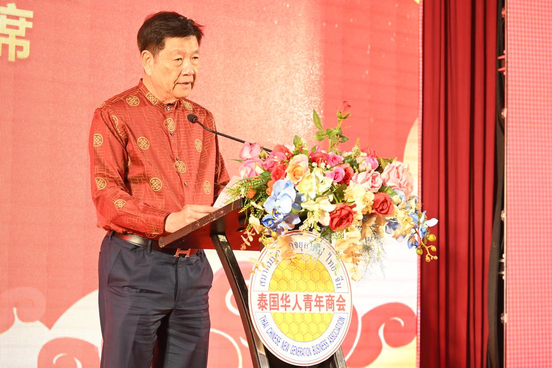 他说到,我相信,在李嘉淳会长的带领下,泰国华人青年商会必将团结凝聚更多的泰国青年华商的智慧和力量,为华商事业的发展壮大,为新时期泰中各行业交流合作的深入,为国家繁荣和社会的进步,为构筑泰中命运共同体,做出更多更大的贡献!在2024年 新春来临之际,我衷心祝泰国华人青年商会 会务兴隆,更上一层楼,祝李嘉淳会长及各位青年华商朋友 新春快乐,身体健康,事业兴旺,龙年大吉!谢谢大家。