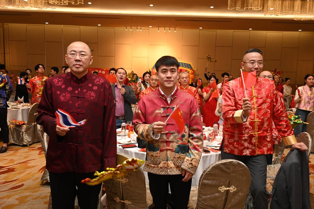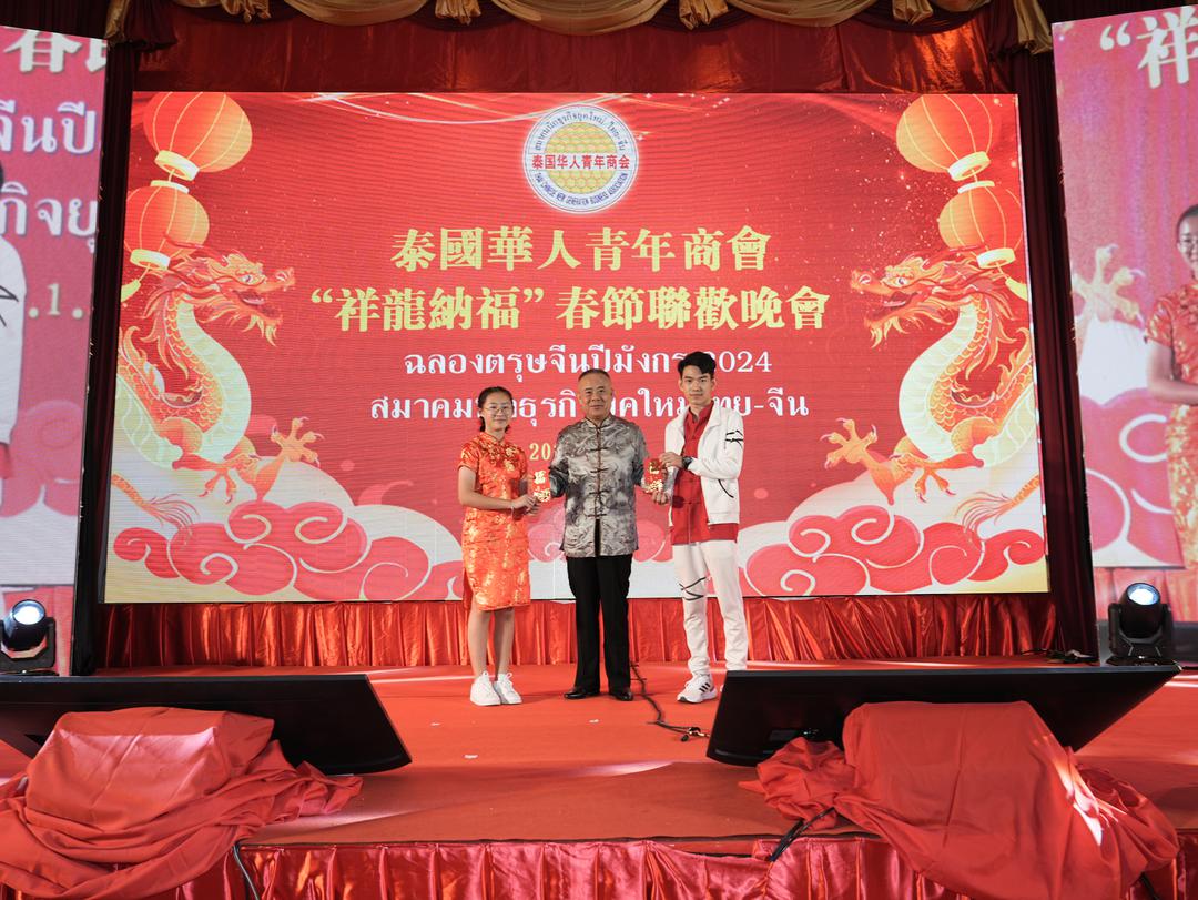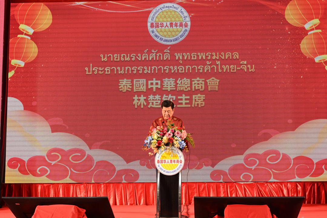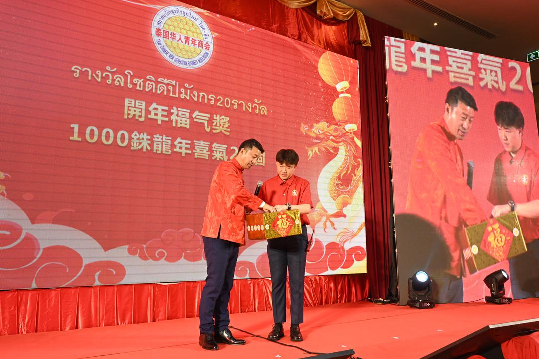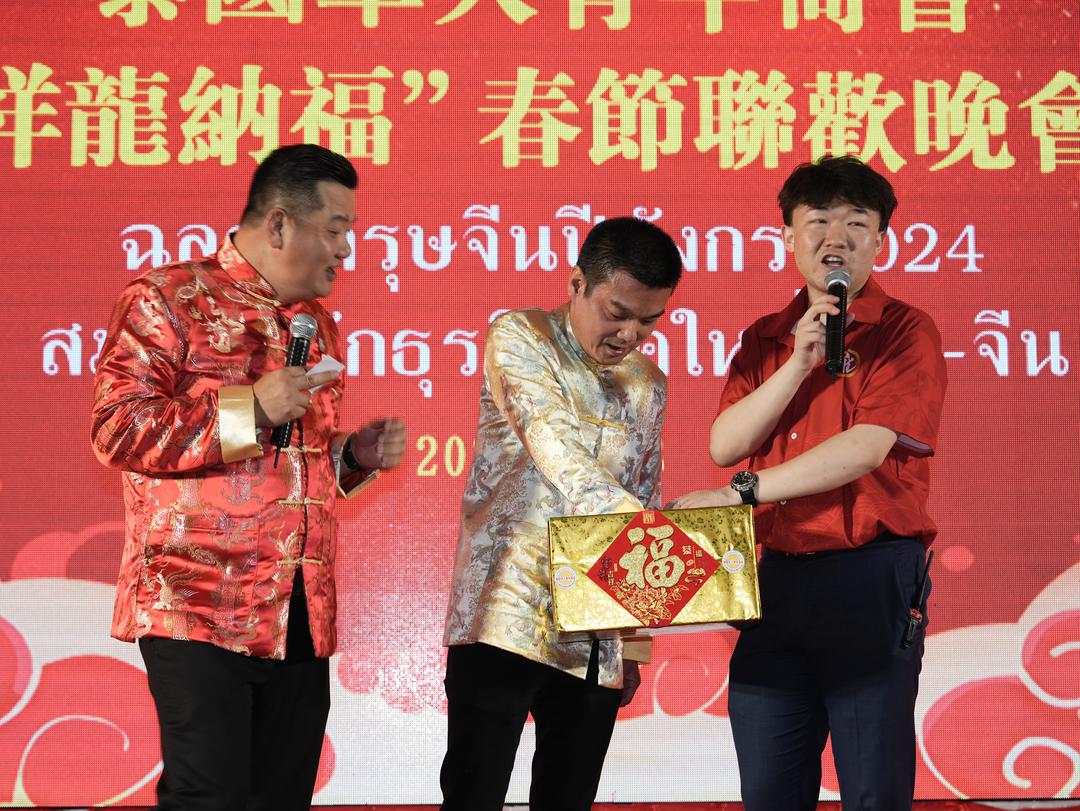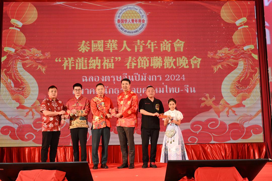 他说到,我相信,在李嘉淳会长的带领下,泰国华人青年商会必将团结凝聚更多的泰国青年华商的智慧和力量,为华商事业的发展壮大,为新时期泰中各行业交流合作的深入,为国家繁荣和社会的进步,为构筑泰中命运共同体,做出更多更大的贡献!在2024年 新春来临之际,我衷心祝泰国华人青年商会 会务兴隆,更上一层楼,祝李嘉淳会长及各位青年华商朋友 新春快乐,身体健康,事业兴旺,龙年大吉!谢谢大家。