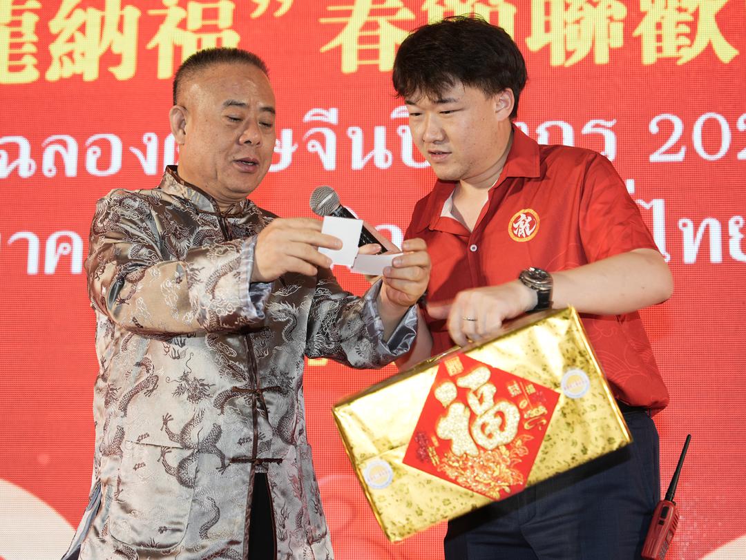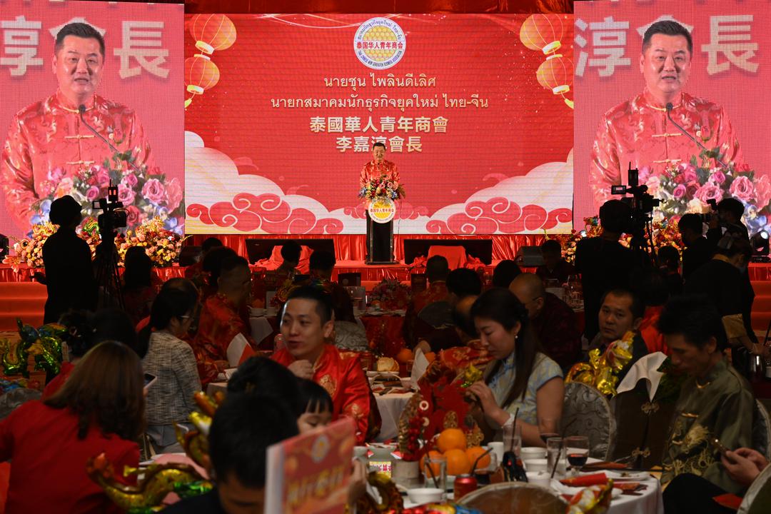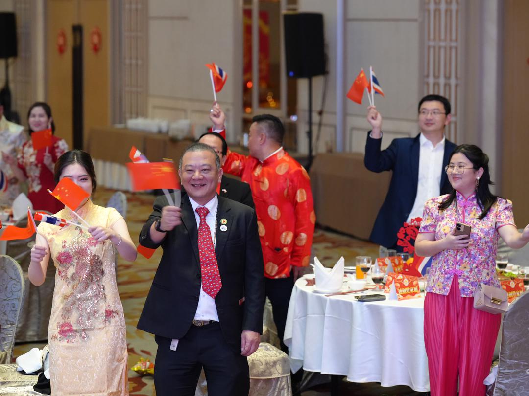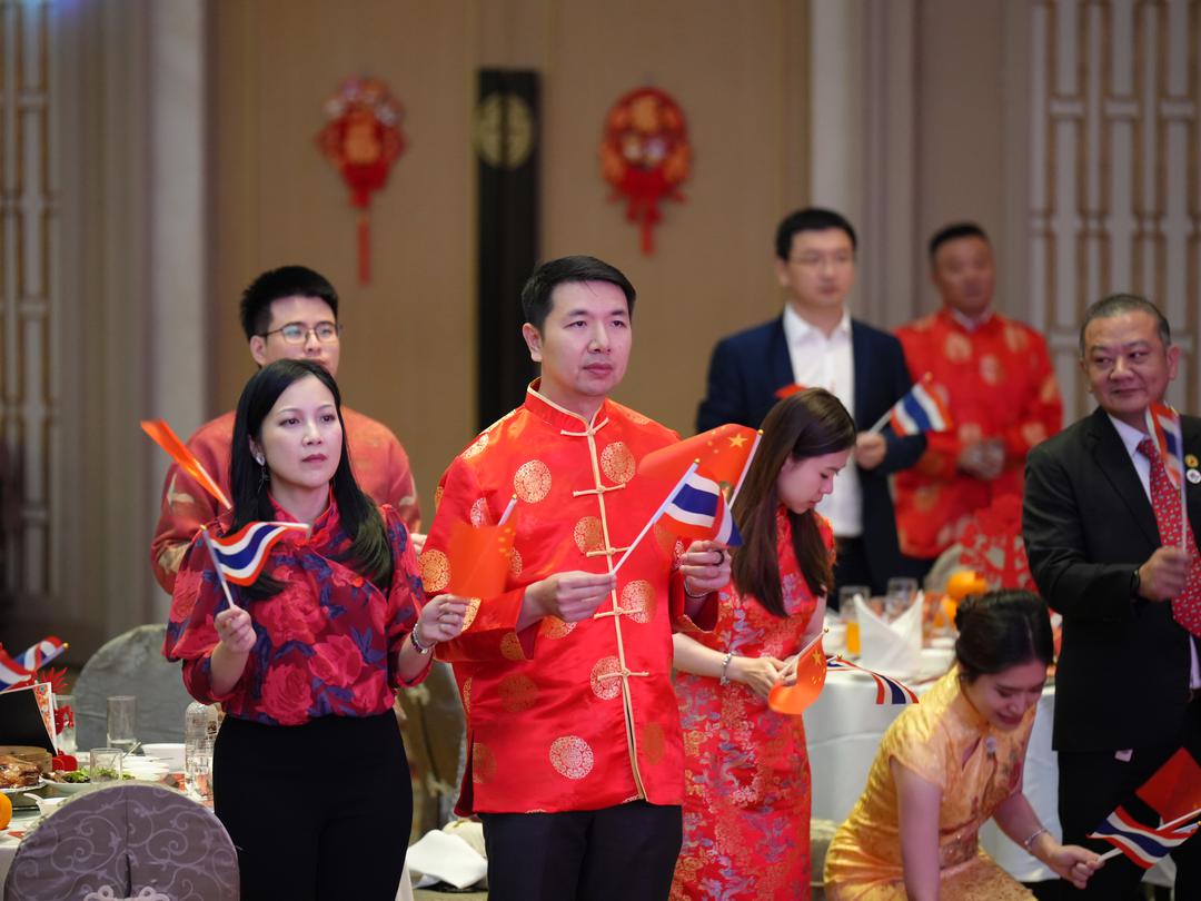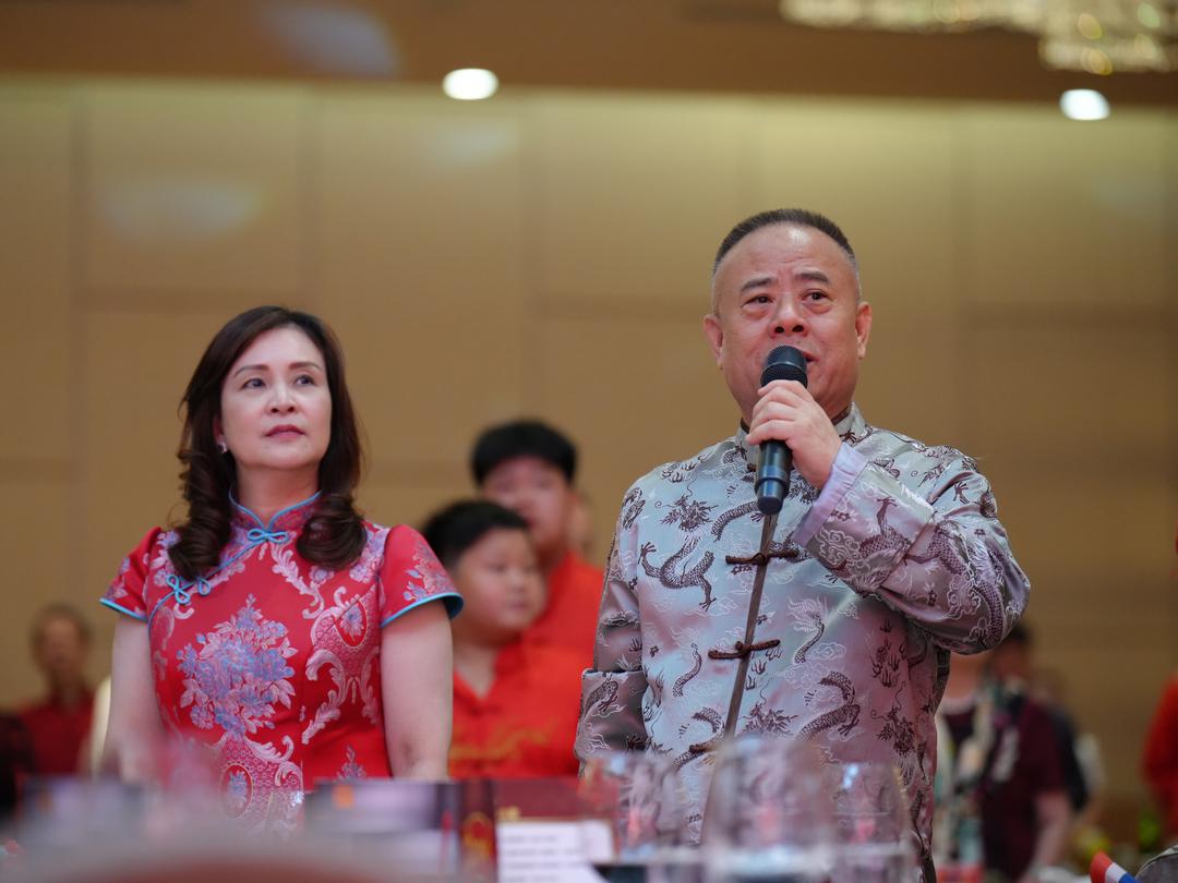 他说到,我相信,在李嘉淳会长的带领下,泰国华人青年商会必将团结凝聚更多的泰国青年华商的智慧和力量,为华商事业的发展壮大,为新时期泰中各行业交流合作的深入,为国家繁荣和社会的进步,为构筑泰中命运共同体,做出更多更大的贡献!在2024年 新春来临之际,我衷心祝泰国华人青年商会 会务兴隆,更上一层楼,祝李嘉淳会长及各位青年华商朋友 新春快乐,身体健康,事业兴旺,龙年大吉!谢谢大家。