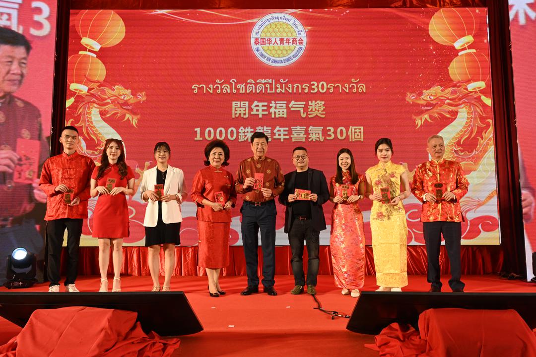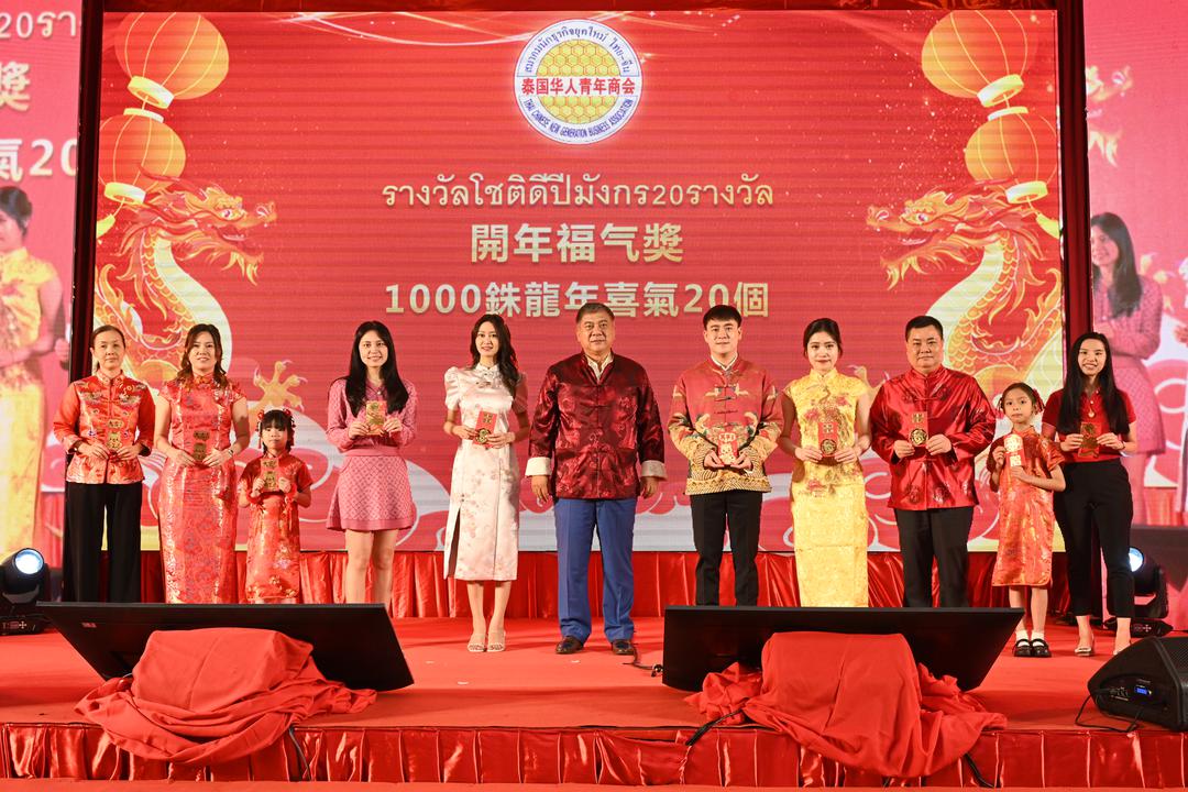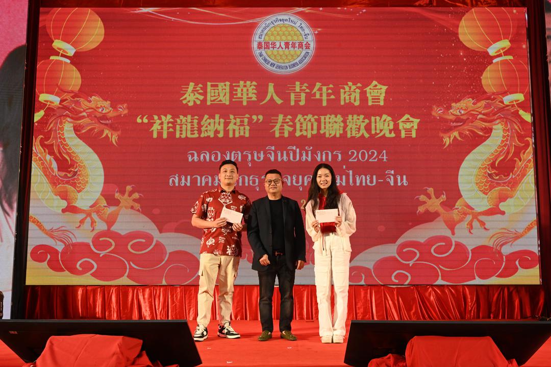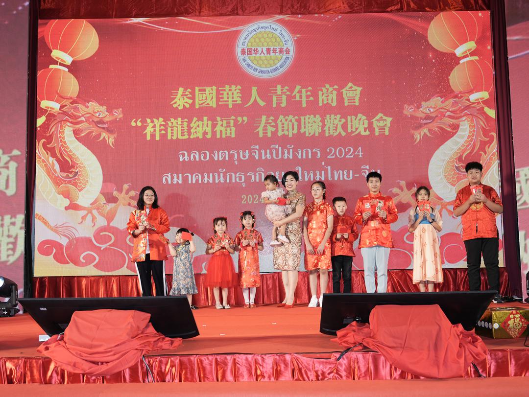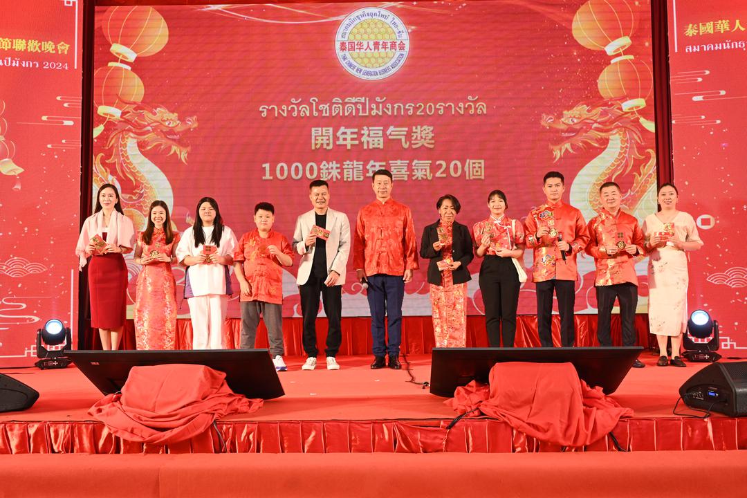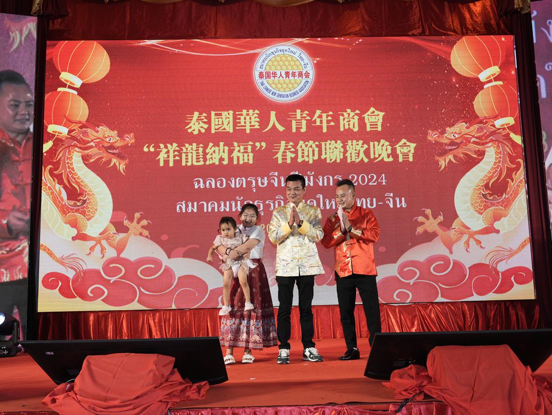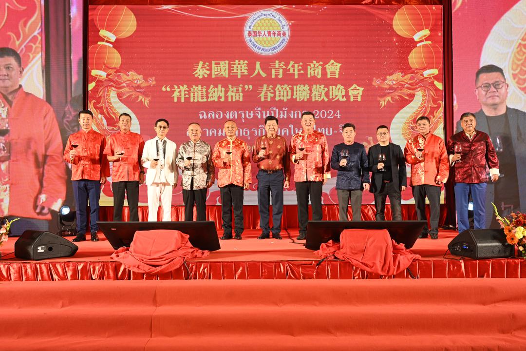 2024年1月28日,泰国华人青年商会第十二届执行委员会第八次会议暨2024“祥龙纳福”春节联欢晚会于在中总九楼光华堂隆重举行。泰国中华总商会林楚钦主席携夫人、泰国警察总署副总督察素拉蓬·猜赞警中将携夫人,泰国华人青年商会李桂雄永远名誉会长携夫人,泰国华人青年商会林深名誉会长携夫人,泰国华人青年商会名誉会长孙经树暨家人,泰国华人青年商会李嘉淳会长携夫人、常务副会长姚鸿春及夫人、林扬刚、陈汉国及家属、史大佗及夫人、李宛情及夫人等近百位常执委携家人亲属出席参加,欢聚一堂,其乐融融,共迎2024中国农历龙年新春的到来!