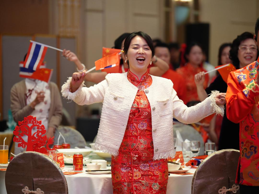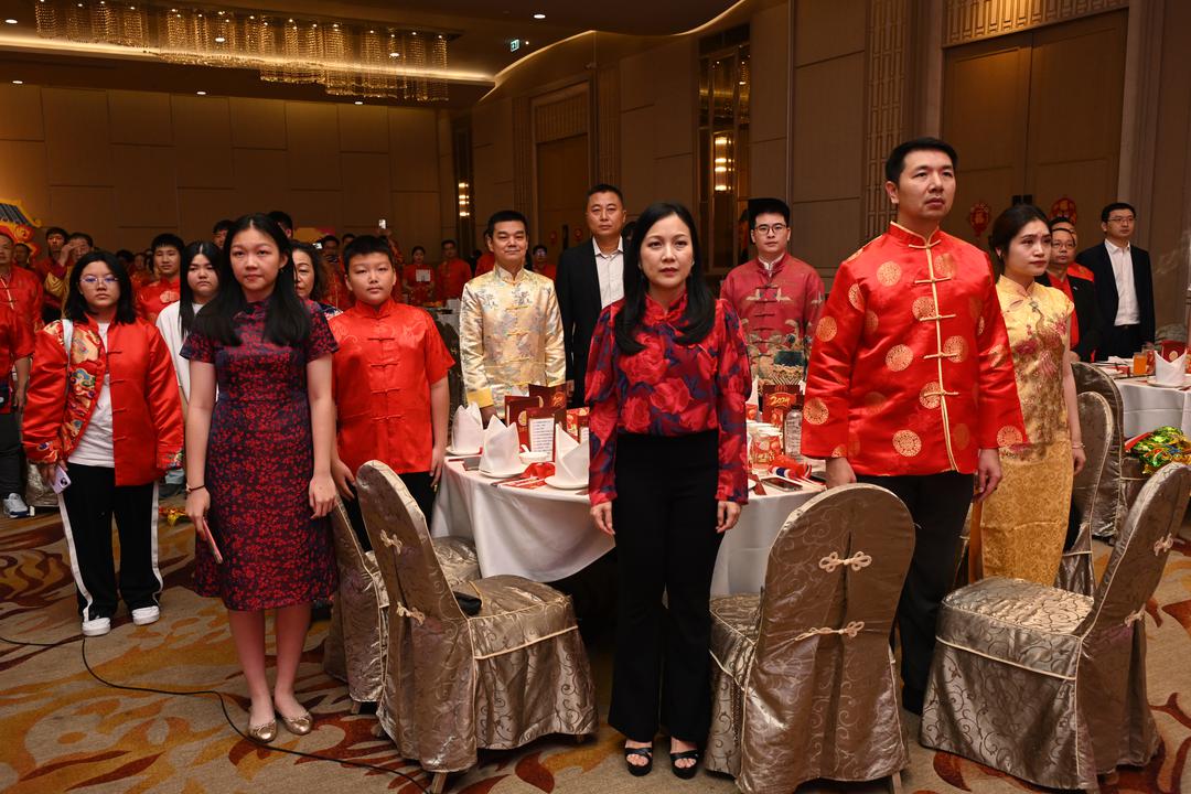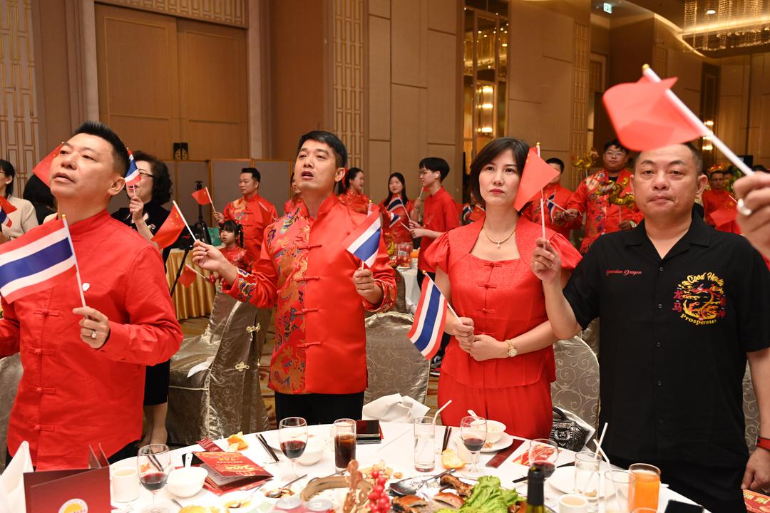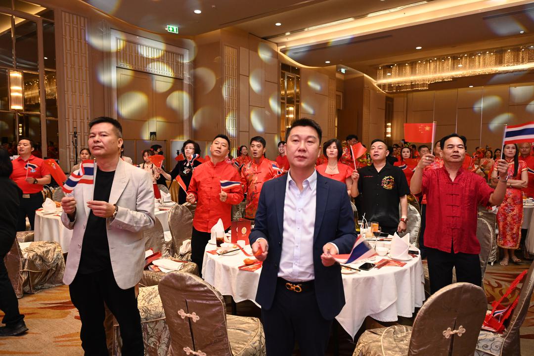 晚会正式开始,主持人主任委员林婷婷、副秘书长赵子杰开场,介绍参与晚宴联欢的嘉宾后,全场起立,奏唱泰中两国国歌。