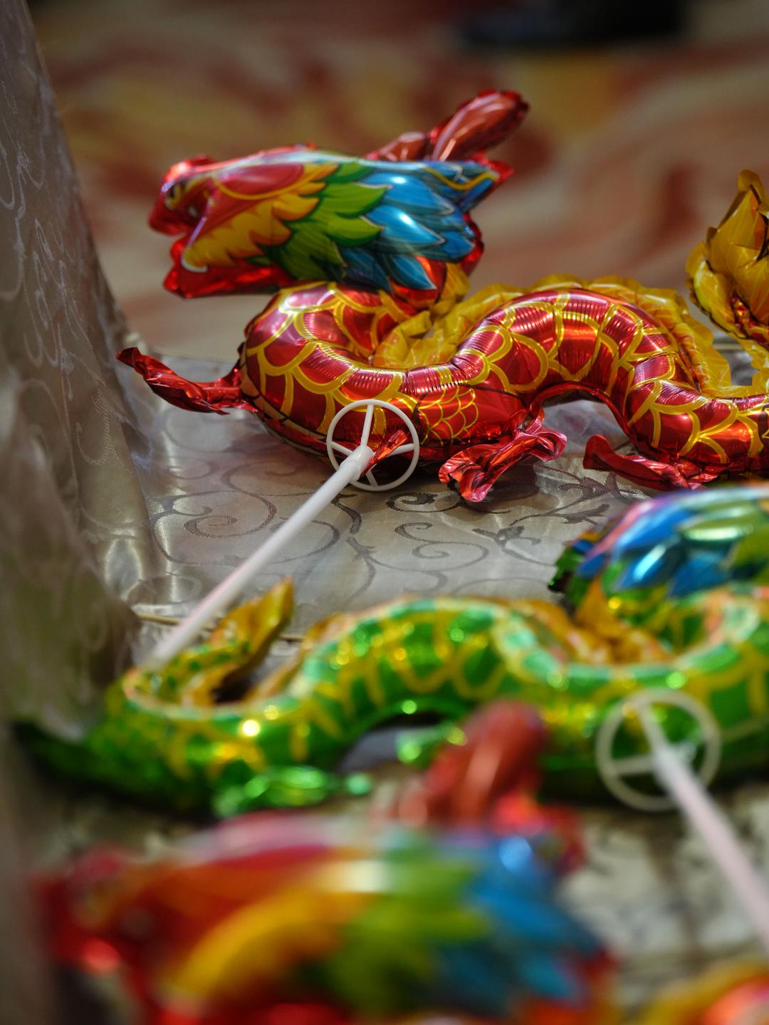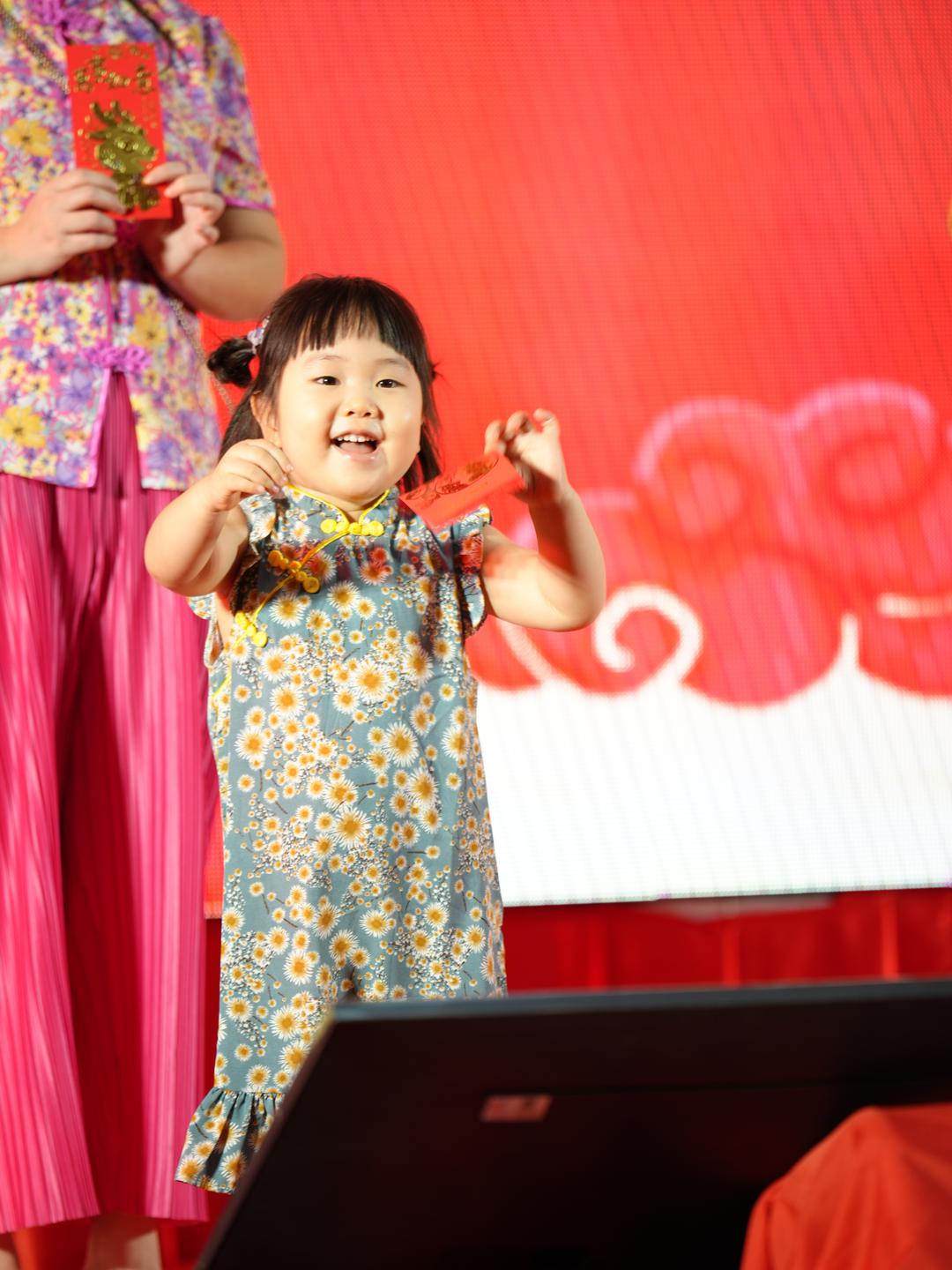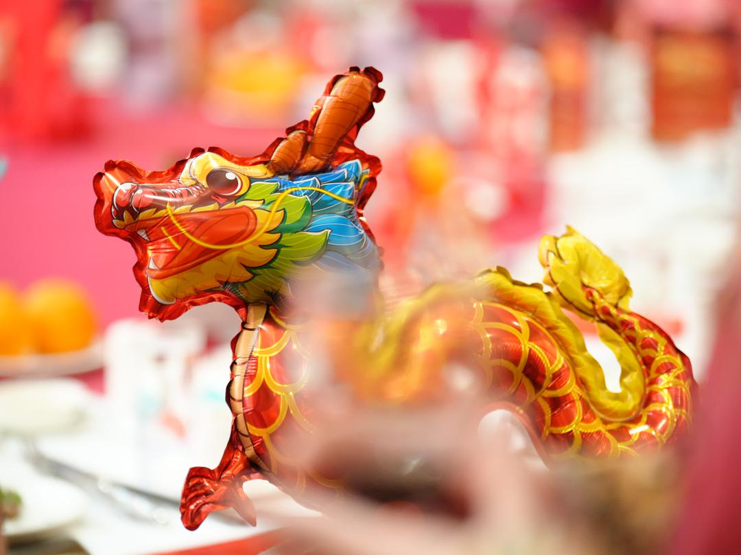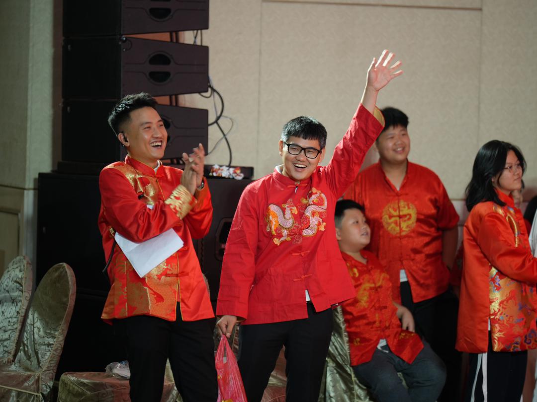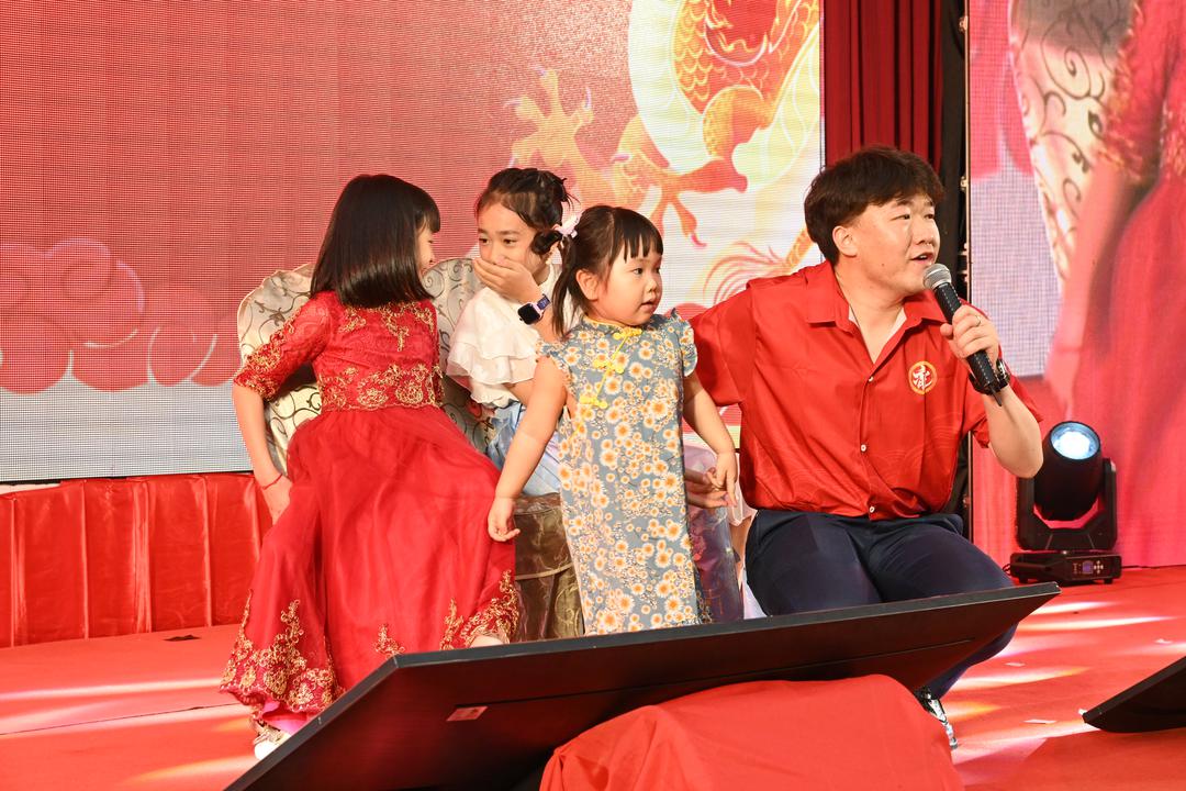 执委会议结束,下午18时,2024“祥龙纳福”春节联欢晚会准备开始,青商会成员及家属孩童们穿上象征中华传统文化的唐装、汉服、马面裙等亮相。商会办公厅特别为会内成员贴心准备了龙形气球和玩偶、福字、对联等各色拍摄道具,在晚会开始前欢乐拍照,现场年味浓厚。