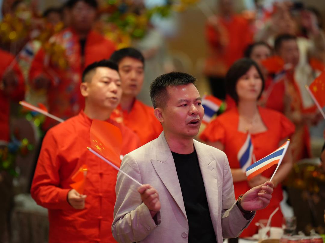 晚会现场,会员们把酒言欢,气氛温馨热闹,情到深处全场挥舞国旗,高声合唱对青商会会员们具有重要意义的歌曲。《歌唱祖国》气势滂沱,表达对祖国的敬爱和祝福;《泰国华人青年商会会歌》精神昂扬,用心唱出青商会人对商会的热爱和自豪。